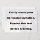 Easily create your own horizontal invitation. Change image with your own photo. Customise it if you want to change text, font size and colour and make your own invitation. Horizontal orientation but you can easily make it vertical. Don't forget to delete the large text before ordering.