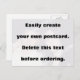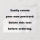 Easily create your own photo postcard. Change image with your own photo and click on Customise to resize image and choose font size and colour and make your unique postcard. Horizontal orientation but you can easily make it vertical orientation. Don't forget to delete the large text before ordering.
