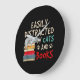 Easily Distracted by Cats and Books | Funny Cat Large Clock