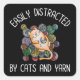 Easily Distracted By Cats And Yarn. Funny & cute yarn lover gift for a knitter, crocheter or yarn addict, who’s also a cat lover! Perfect if you love to knit, crochet or crafting with yarn. Includes a cartoon of a kitty sleeping on a pile of yarn. Do you love knitting, crocheting or weaving? Love to craft with wool, cashmere, alpaca or angora yarn? Do you like to use knitting needles, a crochet hook or a loom, and you’re a crafter who loves the fibre arts & cats? Then this design is for you!