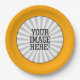 Make your own custom party paper plate easily in one step. Upload your image and see it in a Sun Yellow frame. You can also select the smaller size paper plate right here on this product page.