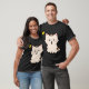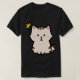 easily startled A cartoon cat is on a black t-shirt. There's a small yellow crown above the cat.
