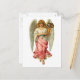 Easter angel with magnificent wings, dressed in a red and white gown trimmed with gold, carries a cornucopia of flowers.