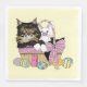 Cute tabby long hair kitten sitting in an Easter Basket with a pink bunny and a stuffed Easter Bunny. Easter Eggs all around the basket.