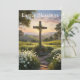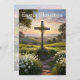 A beautifully illustrated Easter card featuring a traditional depiction of a cross on a hill, surrounded by blooming flowers and serene scenery. A perfect way to share the spirit of Easter, faith, and renewal with loved ones.
