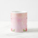Pretty pink watercolor flowers grace the front of this Easter gift mug. Pink watercolor looking background offers depth and dimension behind the cross. Rays come out from the centre of the cross. Beautiful mug to offer Easter blessings!