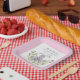 Easter brunch and egg hunt bunny floral paper plate ideal for a spring garden party and Easter brunch and egg hunt. Purple handwriting typography with easy to personalise templates so you can add your family name. Cute Easter bunny holding a big pink and purple spotted Easter egg sitting in spring foliage and daisies with a pink boarder. An adorable simple modern design, perfect for a spring garden party this Easter. Original artwork by artist Catherine Sweetman