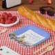 Easter brunch and egg hunt bunny floral paper plate ideal for a spring garden party and Easter brunch and egg hunt. Purple handwriting typography with easy to personalise templates so you can add your family name. Cute Easter bunny sitting in a spring wildflower meadow with a cornflower blue boarder. An adorable simple modern design, perfect for a spring garden party this Easter. Original artwork by artist Catherine Sweetman