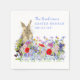 Easter brunch and egg hunt floral custom napkins with cute Easter bunny and colourful watercolor wildflower meadow. Ideal for spring garden party. Easy to personalise cornflower blue typography script so you can add a family name. whimsical boho wildflower meadow design perfect for a spring garden party Easter egg hunt. Original artwork by artist Catherine Sweetman