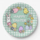 Easter Brunch & Egg Hunt Green Gingham Paper Plate