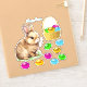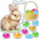 Cute Easter bunny with a basket of colourful Easter eggs. Text can be personalised. Bunnies symbolise abundance, longevity and good fortune!