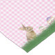 Cute brown bunny with Easter eggs on a pink and white gingham background.