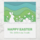 Easter bunny on grass, green and blue wave papercut design, easte egg hunt in spring nature, easter bunny, flowers, butterflies and bees on meadow, happy easter customisable text