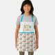 This classic Easter bunny-designed apron is perfect for kids to wear when they colour holiday eggs. The design features an Easter bunny, carrot, coloured eggs, and a butterfly.
