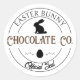 This sticker features a vintage style label with an Easter Bunny Chocolate Company design. The "Chocolate Co." title is printed across the centre in an old-style brown font. "Official Seal" is printed across the bottom in a retro style script font. A silhouette of a bunny is pictured at the top, with an egg in the bottom portion.