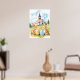 Easter Bunny Church Watercolor Drawing Poster