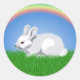 Easter Bunny sitting in grass on rainbow background. Digital illustration