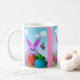 Funny bunny with Easter eggs in spring meadow. You can choose mug's style,colour and size as well you prefer.
