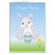 Cute Easter bunny with Easter egg and flower Happy Easter Card. Text can be personalised for Easter or Birthday. Bunnies symbolise longevity, abundance and good fortune.