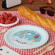 Hop into the Easter spirit with our cut-out paper plate featuring a delightful scene of an Easter bunny, a chick, a colourful egg, a carrot and a ladybug among fluffy clouds. This unique and adorable paper plate is perfect for sending Easter wishes to your loved ones. Our simulated cut-out paper design adds a touch of whimsy and the pun "Hoppy Easter" is sure to bring a smile to anyone's face. Plus, you can customise the text to your preferred language, writing “Joyeuses Pâques” or "Buona Pasqua. Order now to make your Easter '"eggstra" special!