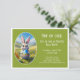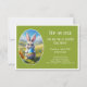 "Hop on over for an Easter egg hunt!" Invite your guests to your party with this elegant invitation featuring a cute Easter bunny with Easter eggs in an idyllic landscape.