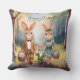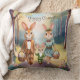 A charming and whimsical Easter Pillow with a warm, personal touch. The watercolor style gives it a soft, ethereal quality, and the anthropomorphic bunny family adds a delightful narrative element.