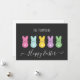 Easter Bunny Family of 5 Greeting Card. Enter your names, you can also change the colour of the bunnies. This design can be transferred to any product offered by Zazzle. If you need any help please feel free to email me at KymberliDesigns@gmail.com