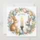 Easter Bunny Pink Blue Candle Illustration Holiday Card