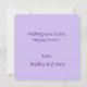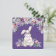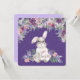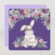 This sweet card features a beautiful watercolor white bunny rabbit sitting amongst wildflowers. A canopy of flowers drapes down from above and it is all set against a purple background. The reverse side of the card says "Wishing you a Hoppy Easter" and then you personalize with your own closing words and your name. The back side is lavender with purple text. All of the text on the back is customizable should you wish to change it to say a different greeting.