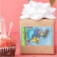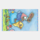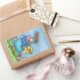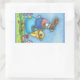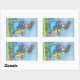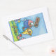 EASTER BUNNY RIDING CUTE CHICK IN BLUE EGG, WHIMSY RECTANGULAR STICKER