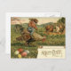 Easter Bunny Rooster Coloured Egg Riding Holiday Postcard