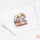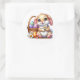 Round sticker is shown with a cute Easter bunny art print.