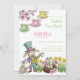 Hop on over for a delightful Easter Tea Party with this whimsical invitation! Featuring a charming illustration of the Easter bunny at a Mad Hatter / March Hare style tea party. The design includes playful cupcakes, colorful Easter eggs nestled in a bird's nest, and blooming spring flowers, all set against a soft pink and green color palette. It's the ideal way to invite guests to a magical celebration, whether for a birthday or a special Easter event.