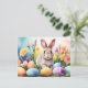 Easter Bunny with Spring Flowers, Painted Eggs Holiday Postcard