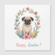 Spread joy this bright holiday with our Easter card featuring a cute pug surrounded by a delicate Easter arrangement in pastel shades. This card is perfect for Easter greetings, adding warmth and cosiness to your wishes.