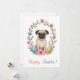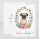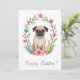 Spread joy this bright holiday with our Easter card featuring a cute pug surrounded by a delicate Easter arrangement in pastel shades. This card is perfect for Easter greetings, adding warmth and cosiness to your wishes.