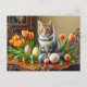 Easter Cat with Eggs and Tulips Postcard