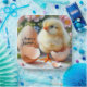 A fluffy yellow chick hatched from an egg surrounded by vivid spring flowers and festive Easter decorations. This charming scene celebrates the joy and renewal of the Easter season.
