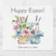 This holidays design features a cute Easter chick with Easter eggs and a flower box full of gorgeous spring flowers with a blue bow.