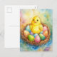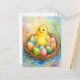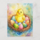 Easter chicken in a nest with eggs Illustration Holiday Postcard