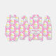 Happy Easter cute baby chicks in eggshell on pink and white polka dot pattern.