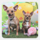 Set in a colourful Easter setting, this Chipin and Chihuahua sit for their 2013 Easter Portrait. The backdrop has four large yellow, green and white Easter Eggs sitting on Easter Grass highlighted with a Bright Blue cloudy sky. The see the entire photoshoot, click over to www.FrankzPawPrintz.photoreflect.com