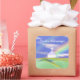 Stickers with my digital artwork of a church on green hills with a rainbow and blue sky above. Customisable text says "Easter Blessings".