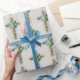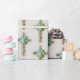 Vintage cross with flowers on Easter or Christian wrapping paper.