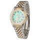 This women's watch has an Easter design of vertical, horizontal, and diagonal lines crossing the design in pale Easter colours.