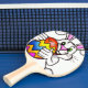 Overall, it's a nice product but for what you pay the quality isn't very good. The way it's glued together, as you can see in the pictures, is messy, the glue is visible and shiny, there's some ink staining that looks like black fluff but isn't, it won't come off. On the paddle's black surface there are also little white marks here and there. It's not too easy to show in the pictures because of the flash but I tried to showcase the little white blemishes that ruin a smooth black surface. This was meant to be a gift and it just looks sloppily put together unfortunately. A few imperfections that mar what could have been really great. The printing was neat.