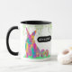 Easter is here and it’s time to celebrate new beginnings with a fun springtime psychedelic Easter bunny, eggs and foliage mug. This colourful watercolor Easter mug is a great way to spread springtime joy with your friends and family. Personalised pink purple teal green yellow and black theme Easter gift for friends and family using the customise and easy to use template. Adorable multicolored artsy eggs pattern unique illustrations in bright abstract psychedelic vibrant colours original artwork by artist Catherine Sweetman.