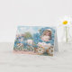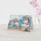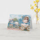 Celebrate the beauty of spring with this charming vintage-inspired Easter card featuring a sweet curly-haired girl riding in a floral Easter egg carriage pulled by two darling lambs. Adorned with soft blue forget-me-not flowers, delicate ribbons, and pastel countryside details, this Victorian-style illustration captures the timeless magic of Easter.