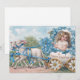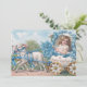 Celebrate the beauty of spring with this charming vintage-inspired Easter card featuring a sweet curly-haired girl riding in a floral Easter egg carriage pulled by two darling lambs. Adorned with soft blue forget-me-not flowers, delicate ribbons, and pastel countryside details, this Victorian-style illustration captures the timeless magic of Easter.