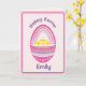 Cute Easter Egg Happy Easter Card with three little chicks. Personalise to how you wish. The verse inside says 'Wishing you an egg-cellant Easter'